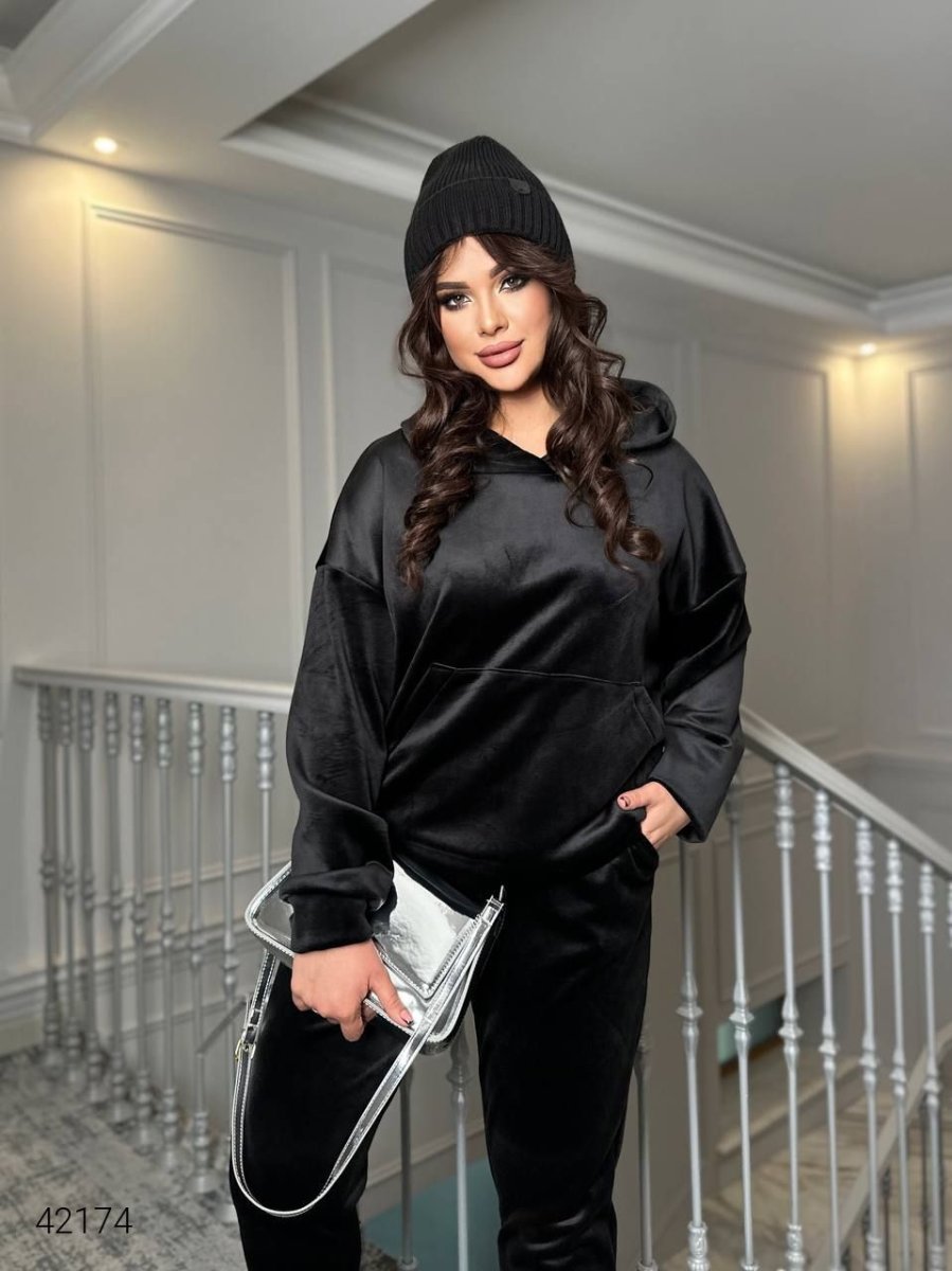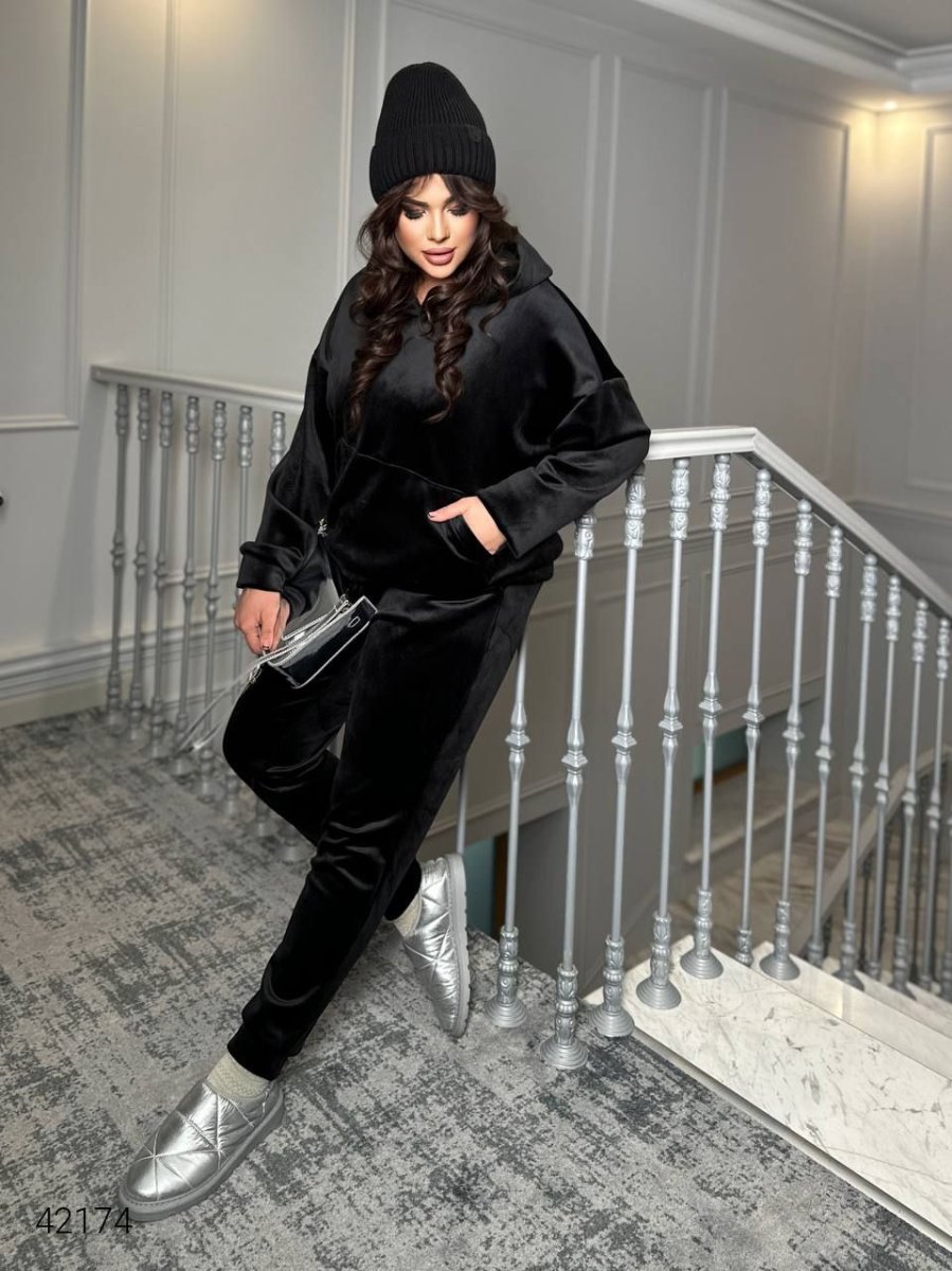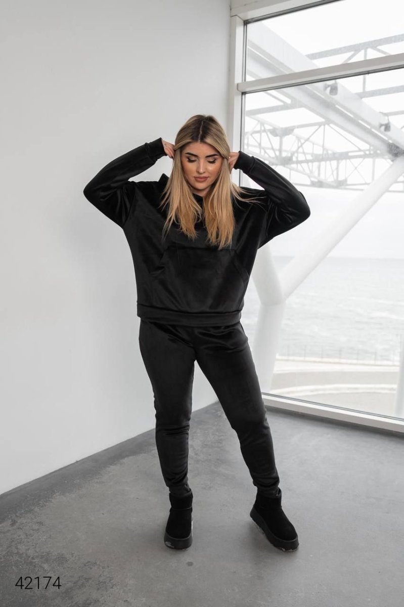 Женский велюровый костюм 42174 черный