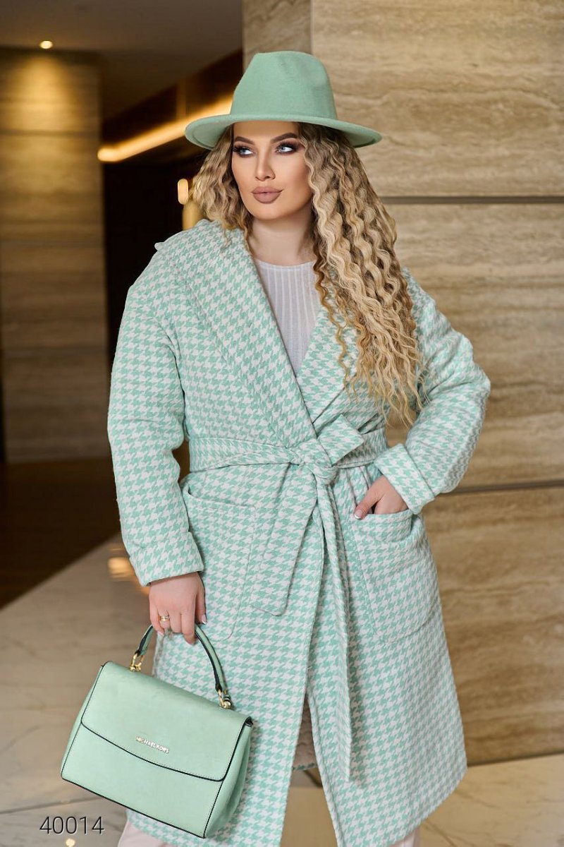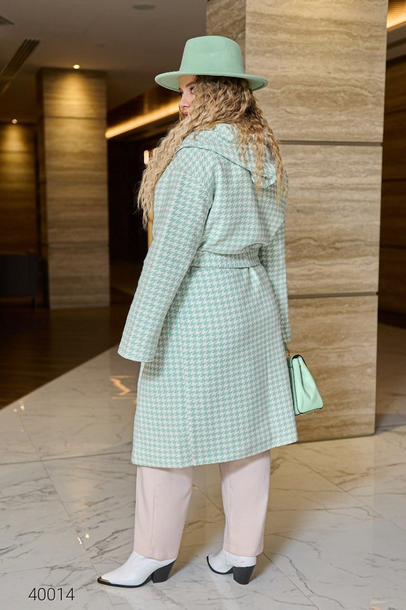 Женское пальто утепленное с капюшоном 40014 ментоловый
