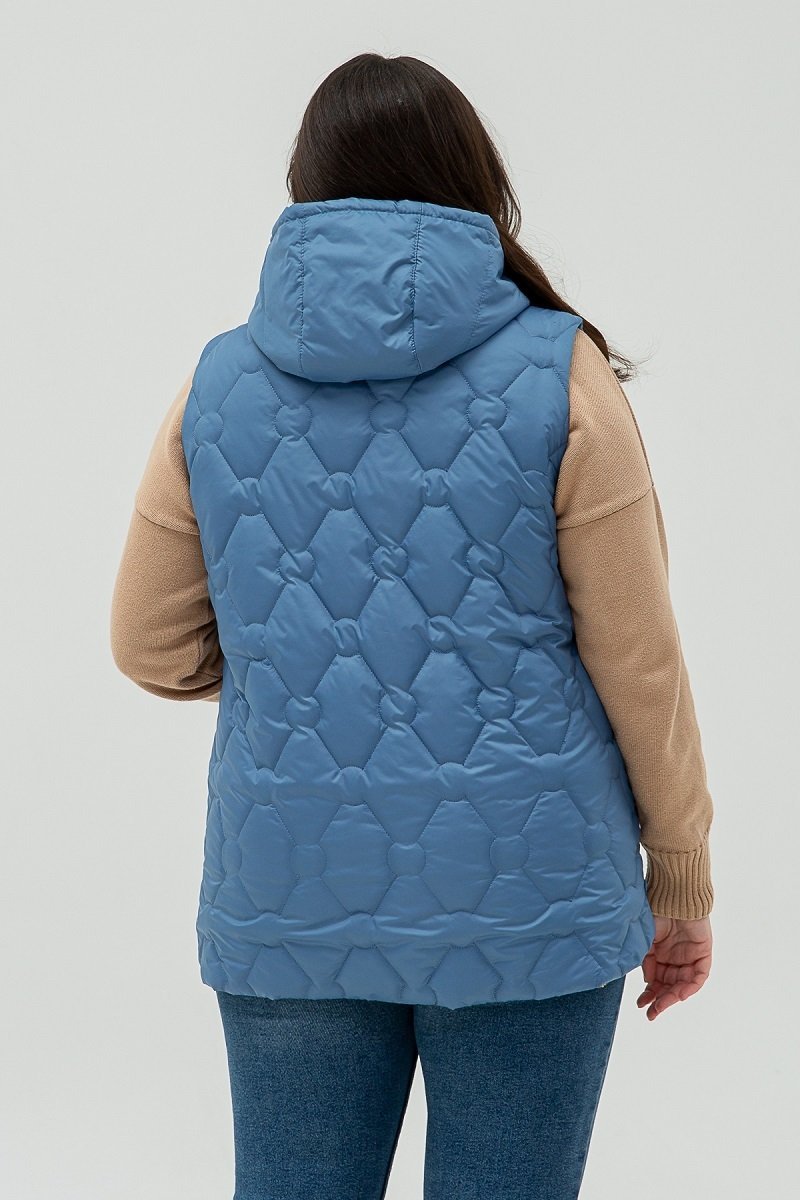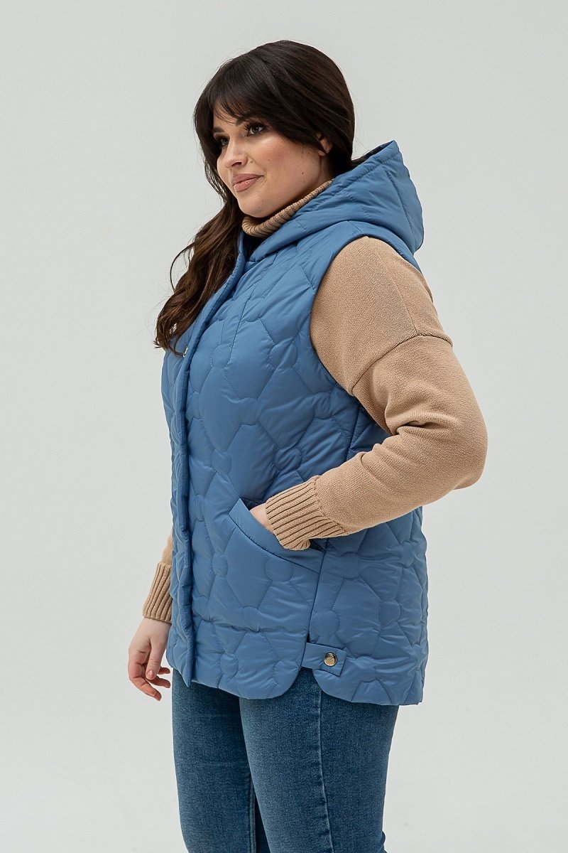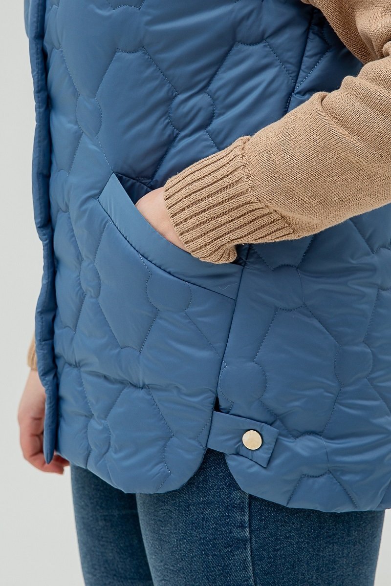 Жилет выполнен из стеганой плащевой ткани, наполнитель – силикон (100), подкладка – нейлон.