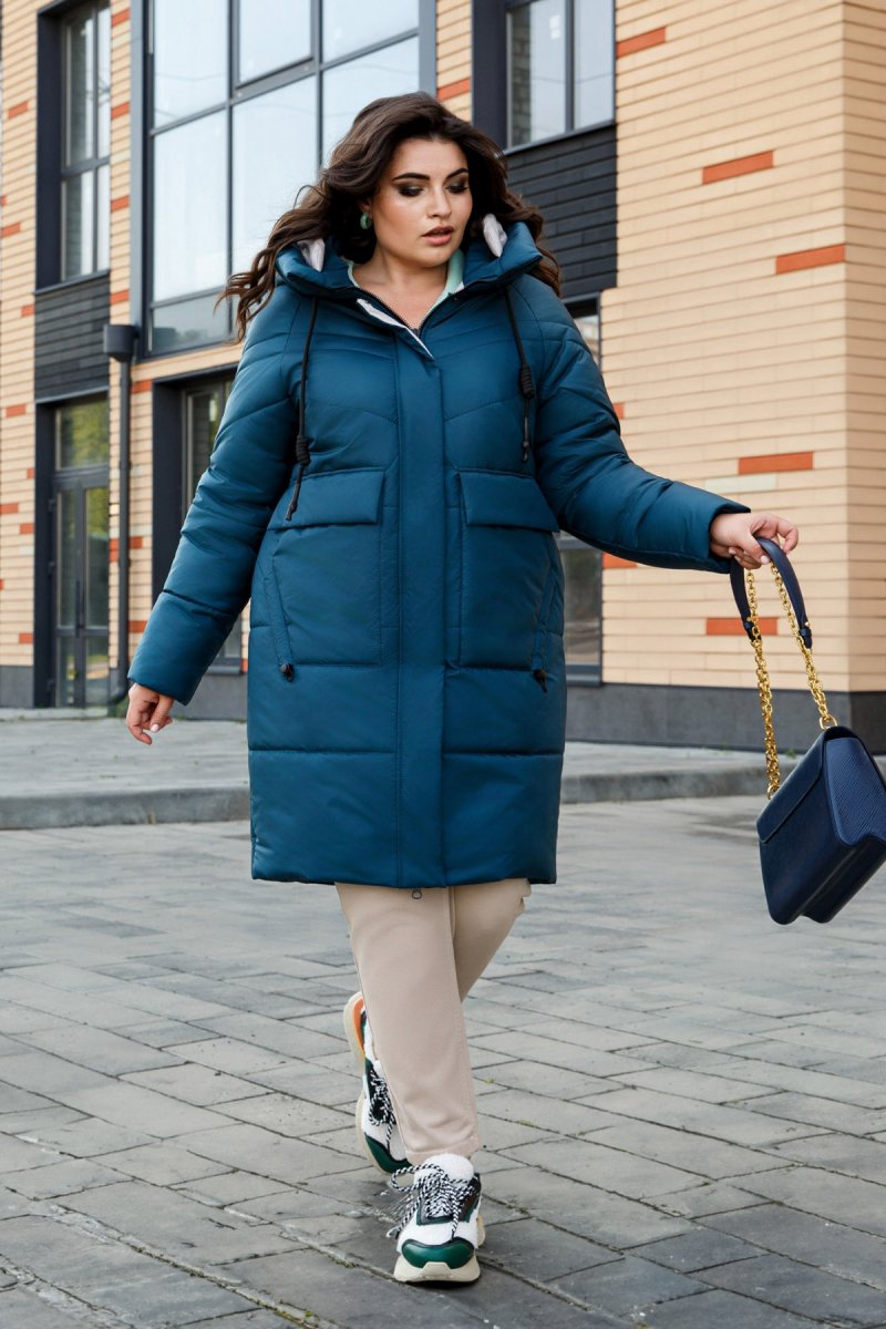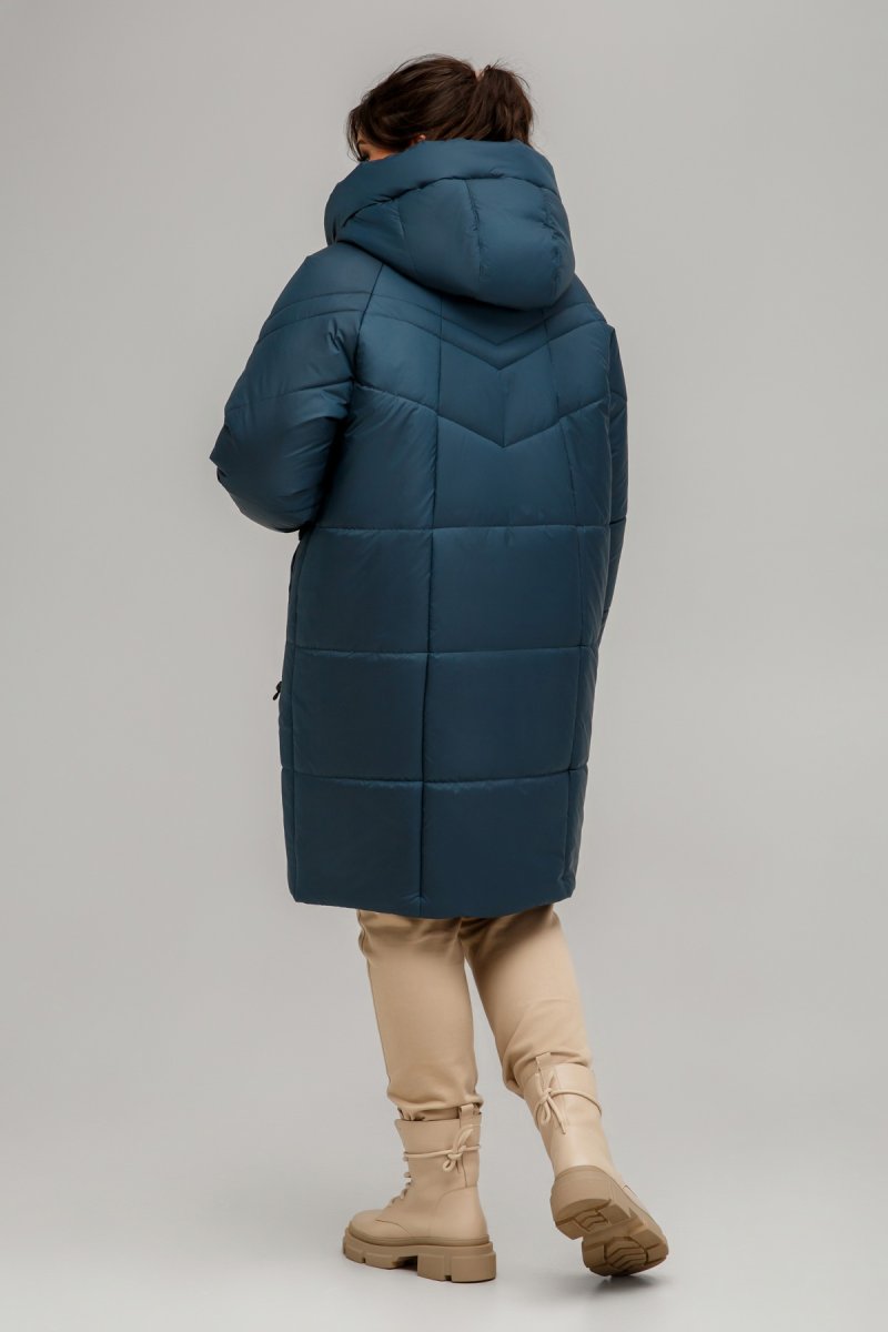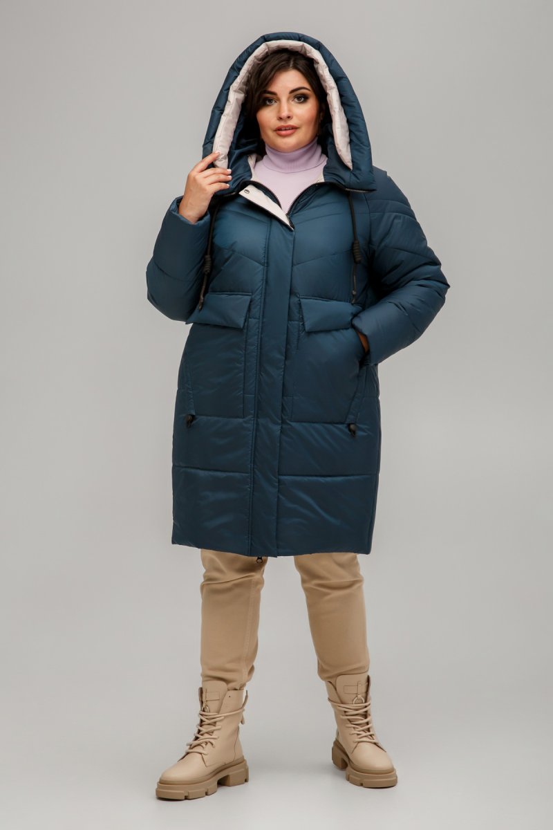 Зимнее пальто прямого силуэта, заужена к низу. Рукав - реглан, одношовный с внутренним манжетом из рибаны. Застежка на двухстороннюю молнию, дополнительно закрывается клапаном с потайными кнопками. Высота капюшона регулируется при помощи шнурка с декоративным плетением, внутри выполнена прилегающая стойка которая дополнительно защищает от ветра.
