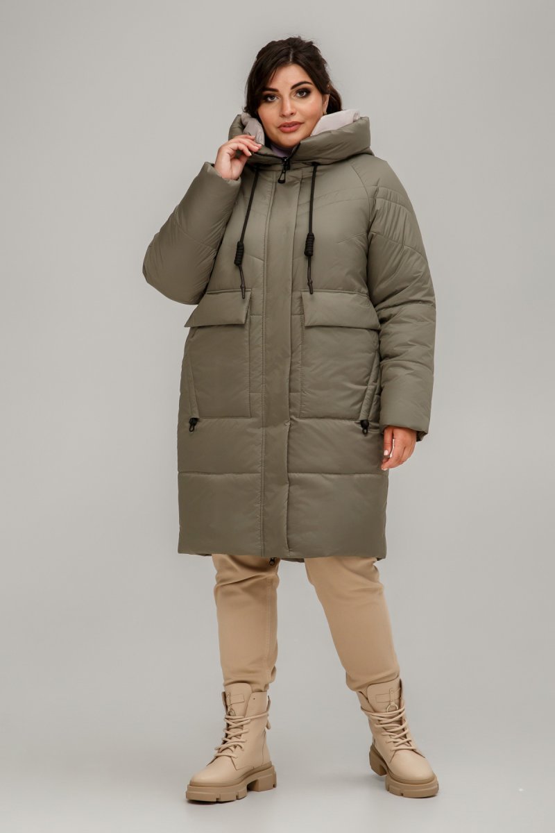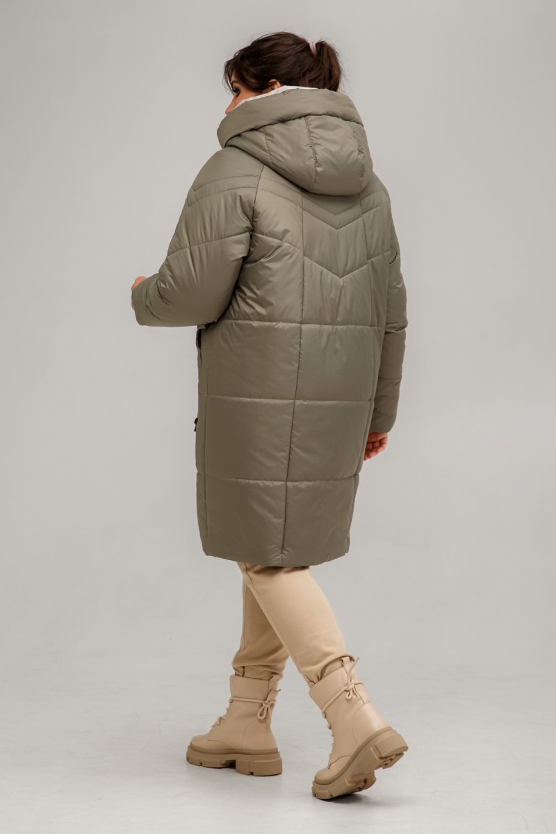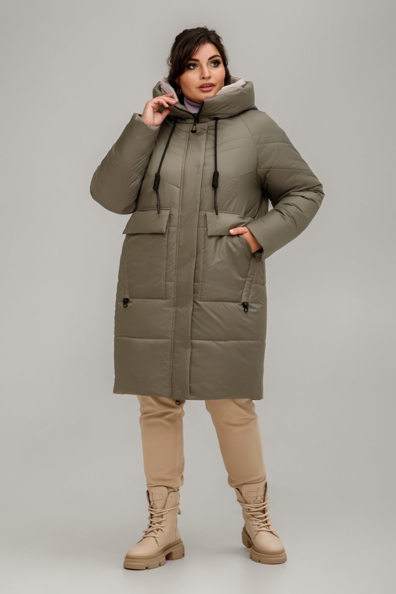 Зимнее пальто прямого силуэта, заужена к низу. Рукав - реглан, одношовный с внутренним манжетом из рибаны. Застежка на двухстороннюю молнию, дополнительно закрывается клапаном с потайными кнопками. Высота капюшона регулируется при помощи шнурка с декоративным плетением, внутри выполнена прилегающая стойка которая дополнительно защищает от ветра.