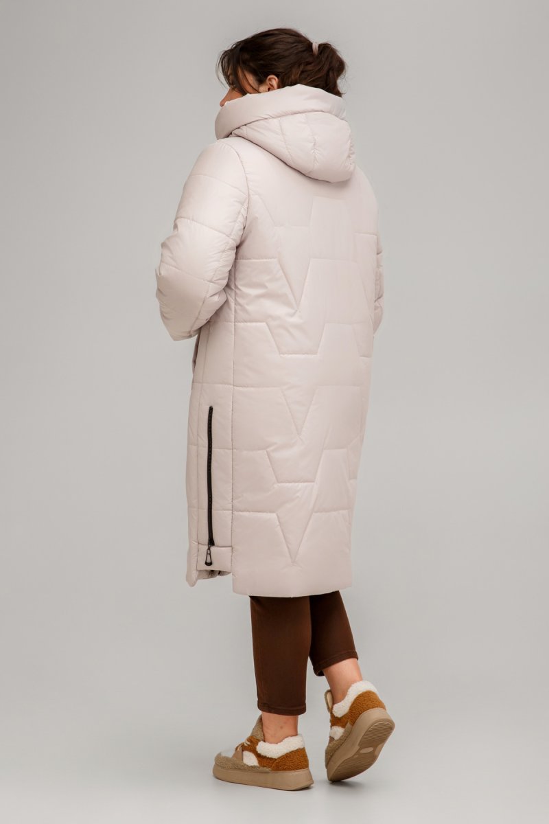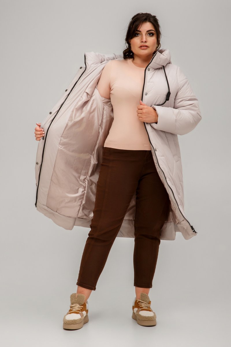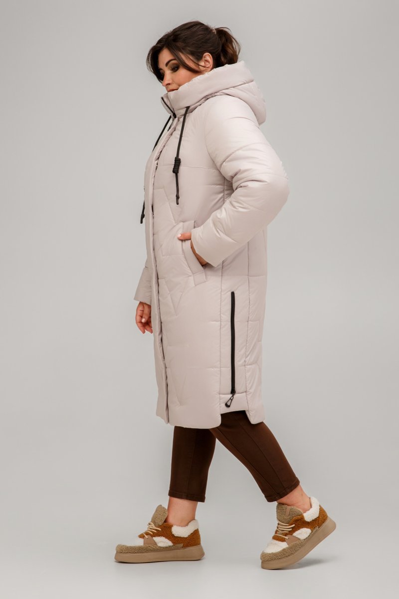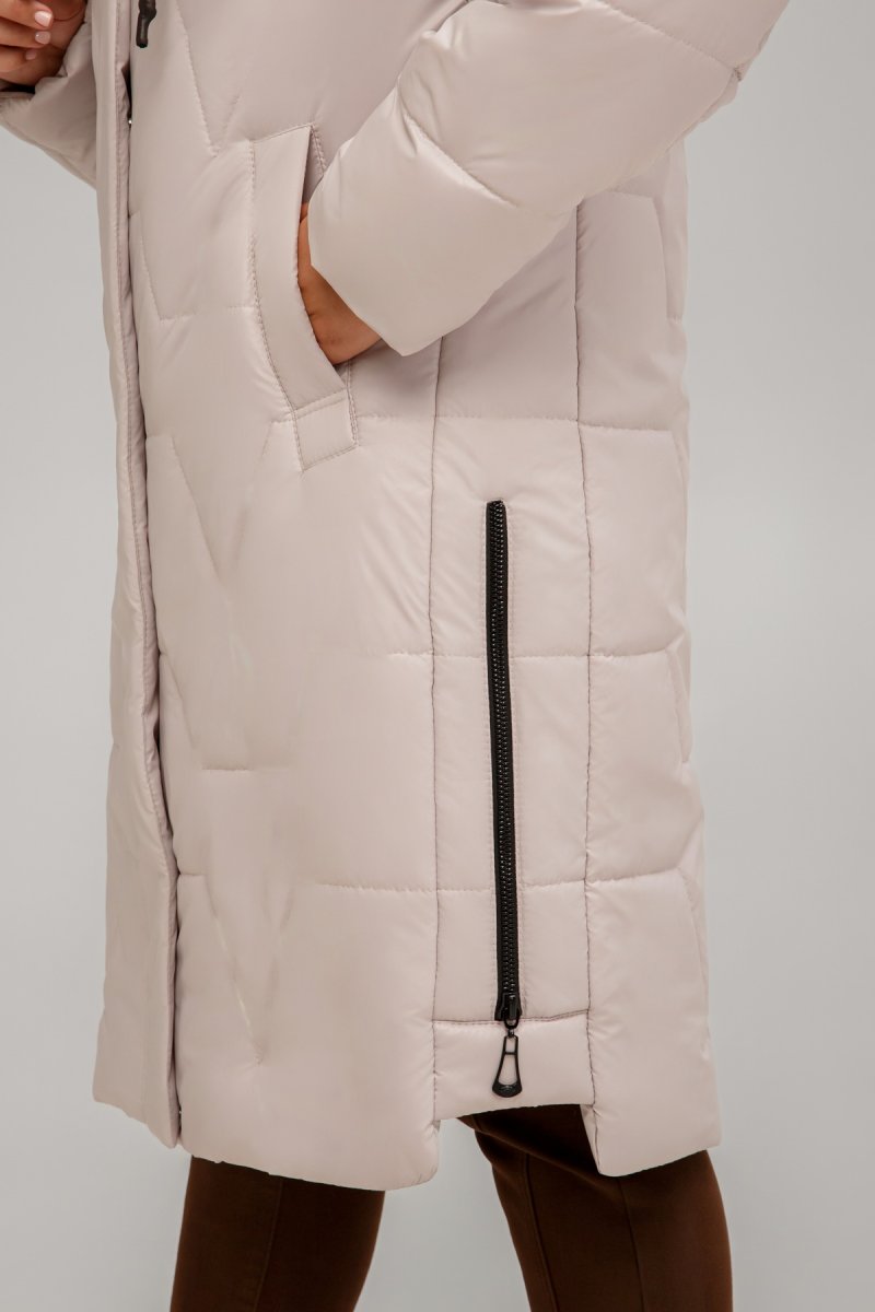 Зимнее пальто прямого силуэта из плащевой ткани. Застежка на двухстороннюю молнию и клапан с потайными кнопками, что дополнительно защищает от ветра. Рукав втачной, двухшовный, внутри выполнены манжеты из рибаны.