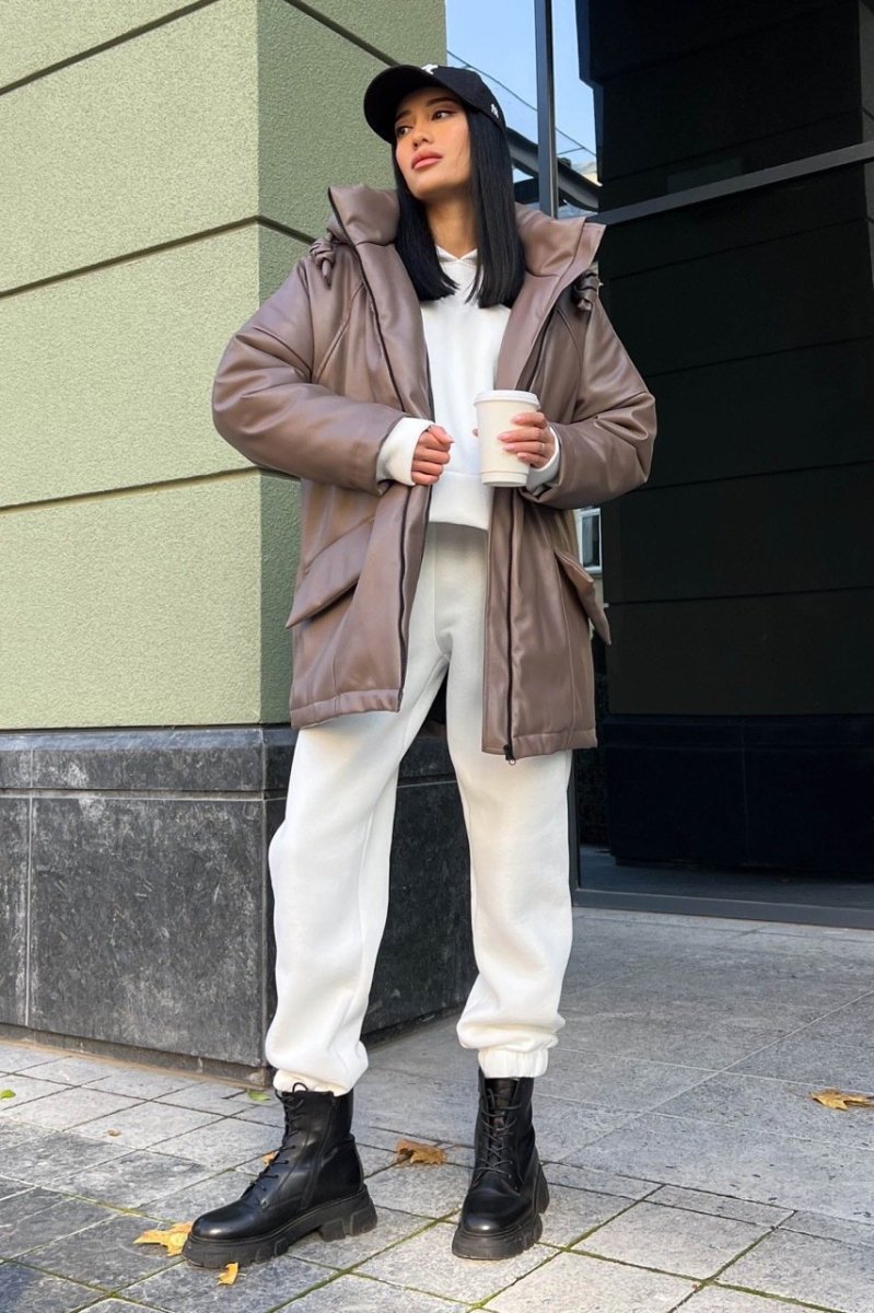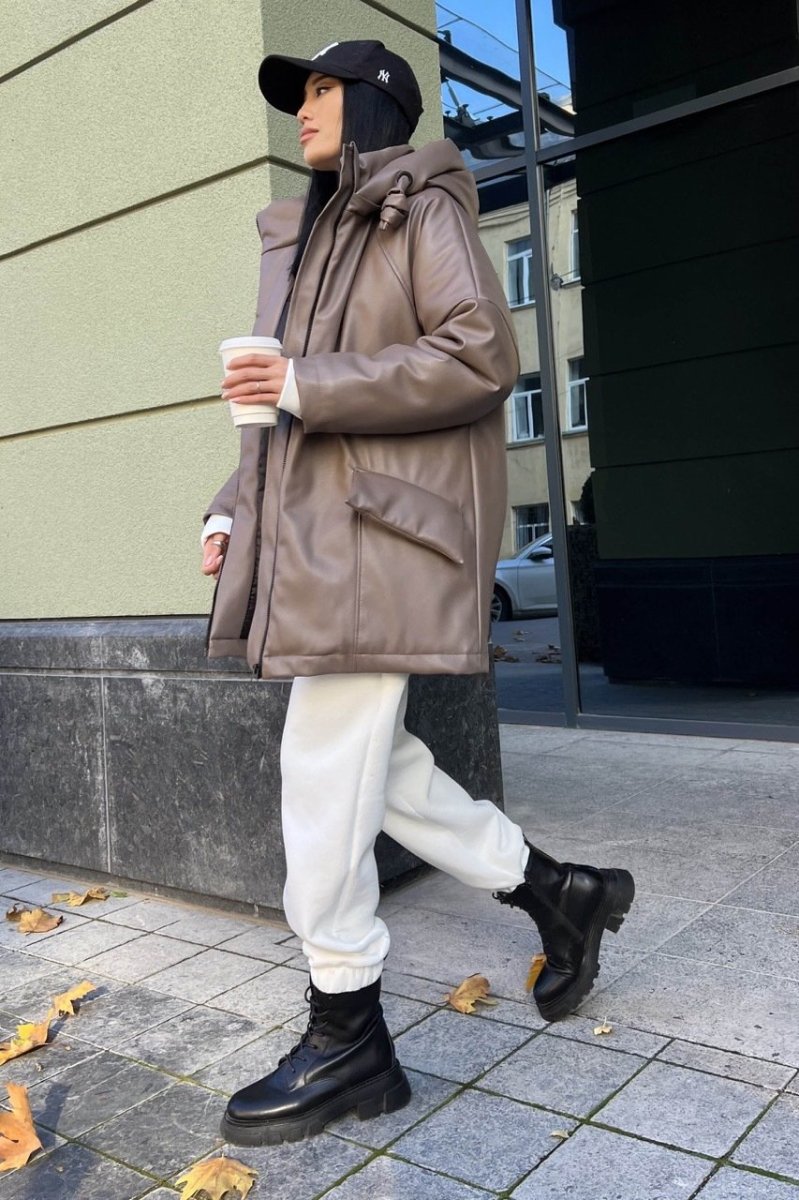 Невероятный тренд 22/23 – теплая дутая куртка oversize из гладкой экокожи на силиконе. Материал не пропускает влагу, создавая комфорт в непогоду. Объемный капюшон на завязках и завязки-шнурки на нижней кромке обеспечивают дополнительную защиту от ветра. Комфортная теплая куртка с снимаемым капюшоном поможет сделать ярче и уютнее каждый ваш прохладный день. Куртка дополнена длинными рукавами с приспущенной линией плеч и удобными карманами. Модель застегивается на змейку спереди.